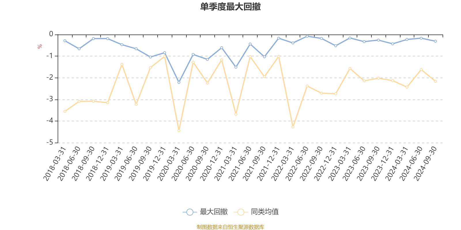 截至11月6日,基金近三年最大回撤为0.67%,同类可比基金排名152/153。其中,单季度最大回撤出现在2020年一季度,为2.21%。