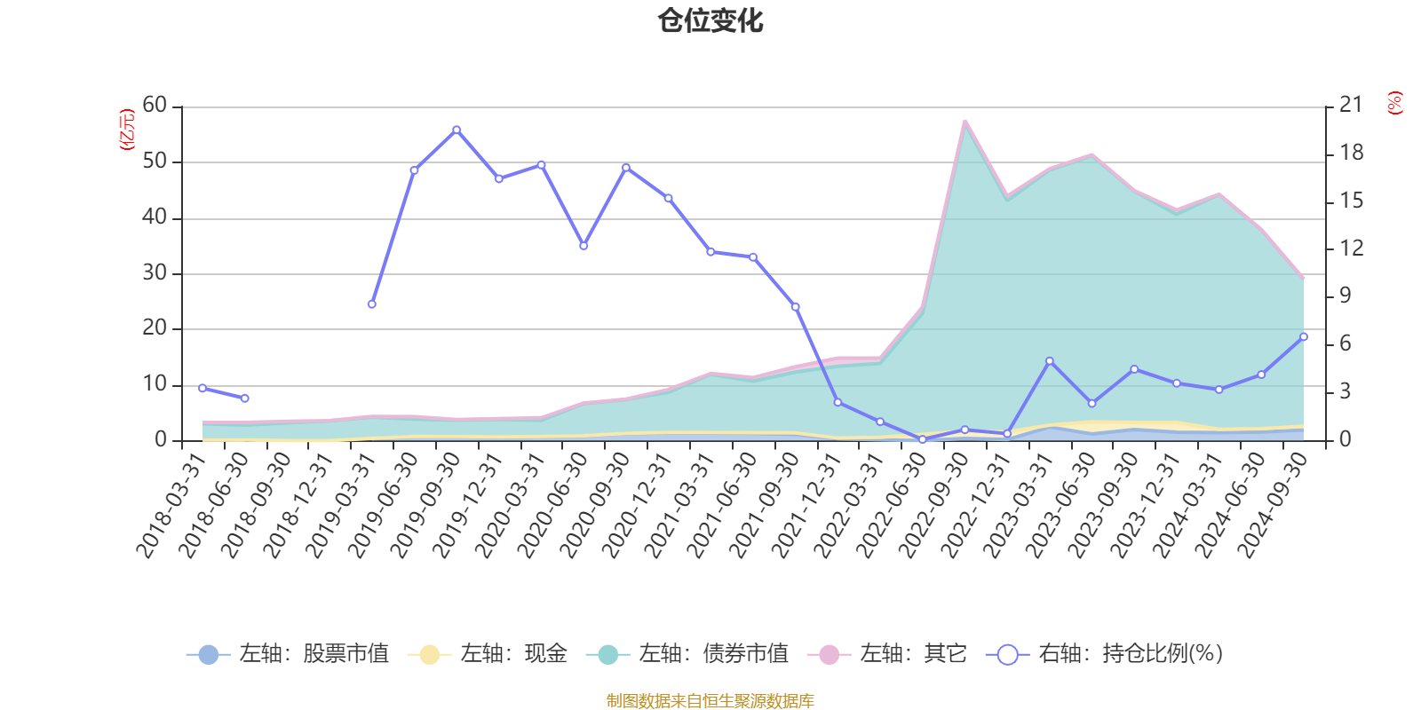 据定期报告数据统计,近三年平均股票仓位为2.85%,同类平均为18.65%。2019年三季度末基金达到19.53%的最高仓位,2022年上半年末最低,为0.08%。