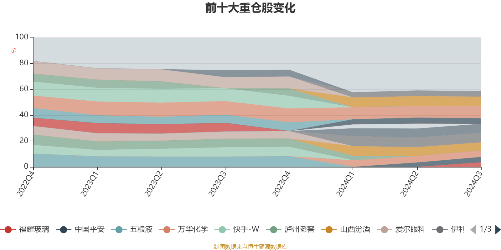 该基金持股集中度较高。截至2024年三季度末,基金十大重仓股分别是贵州茅台、伊利股份、青岛啤酒、海尔智家、山西汾酒、万华化学、长江电力、招商银行、中国平安、福耀玻璃。