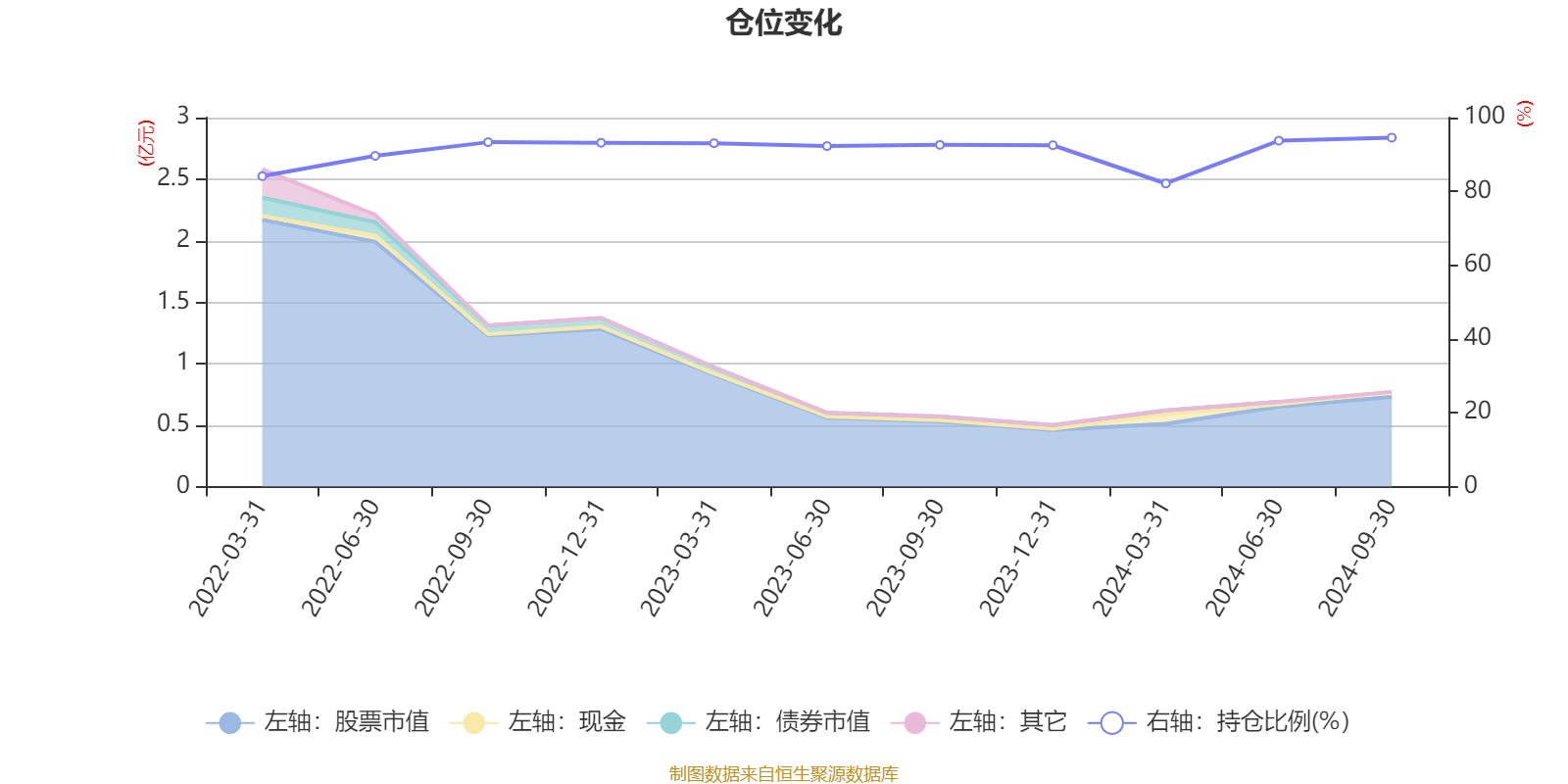 据定期报告数据统计,成立以来平均股票仓位为91.01%,同类平均为83.36%。2024年三季度末基金达到94.56%的最高仓位,2024年一季度末最低,为82.14%。