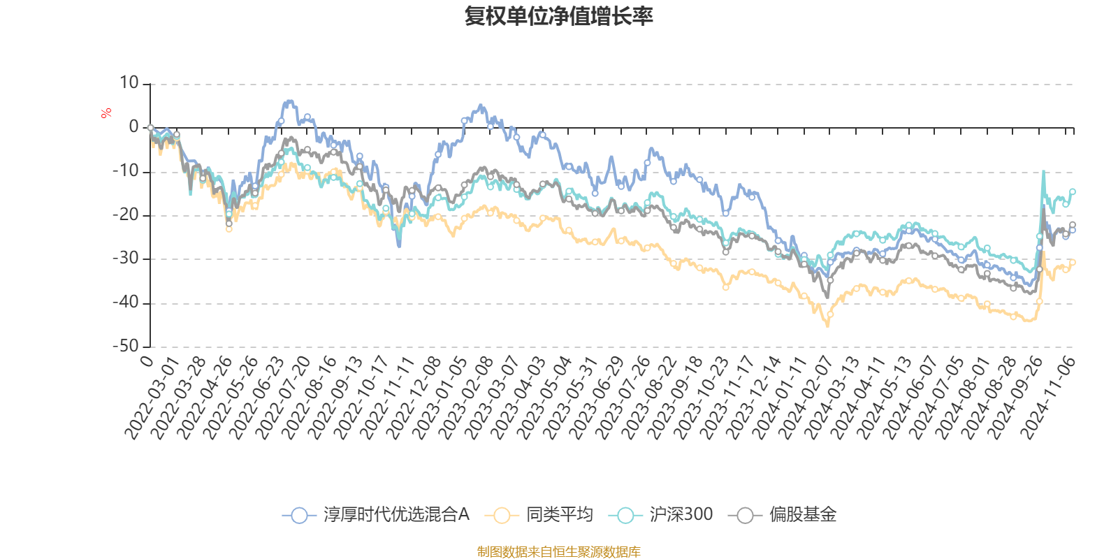 截至11月6日,淳厚时代优选混合A近三个月复权单位净值增长率为12.95%,位于同类可比基金384/536;近半年复权单位净值增长率为0.54%,位于同类可比基金389/535;近一年复权单位净值增长率为-12.13%,位于同类可比基金416/471。