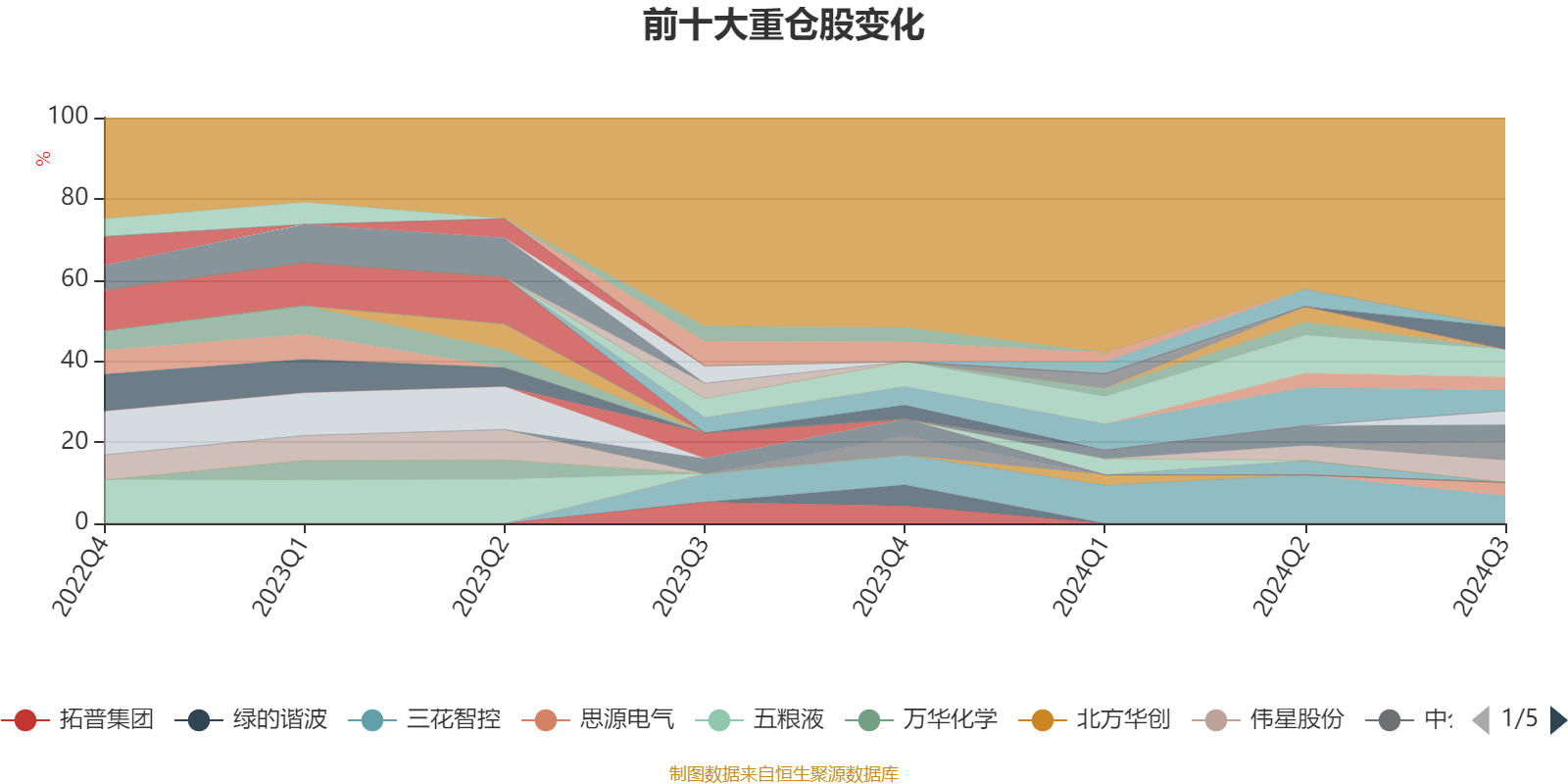 截至2024年三季度末,基金十大重仓股分别是柏楚电子、三花智控、三一重工、纽威股份、国药股份、传音控股、杰瑞股份、杰克股份、思源电气、徐工机械。