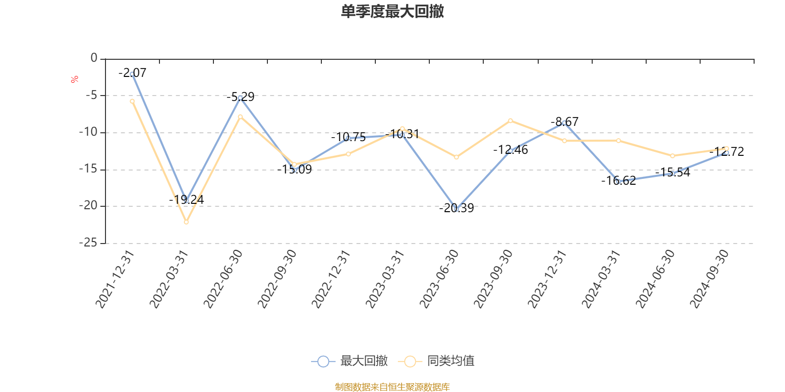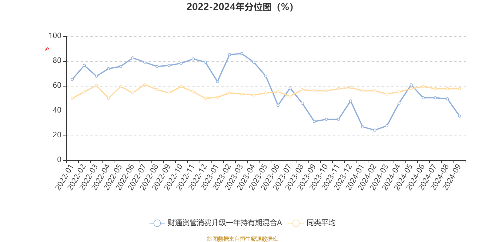 通过所选区间该基金净值增长率分位图,可以观察该基金与同类基金业绩比较情况。图为坐标原点到区间内某时点的净值增长率在同类基金中的分位数。