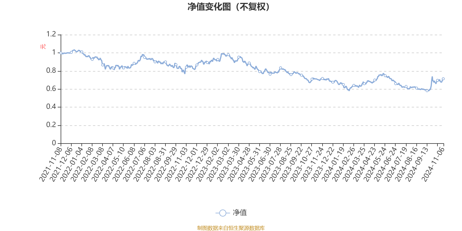 该基金属于偏股混合型基金,长期投资于消费股票。截至11月6日,单位净值为0.713元。基金经理是于洋和林伟,目前共同管理1只基金。截至11月6日,近一年复权单位净值增长率为0.06%。