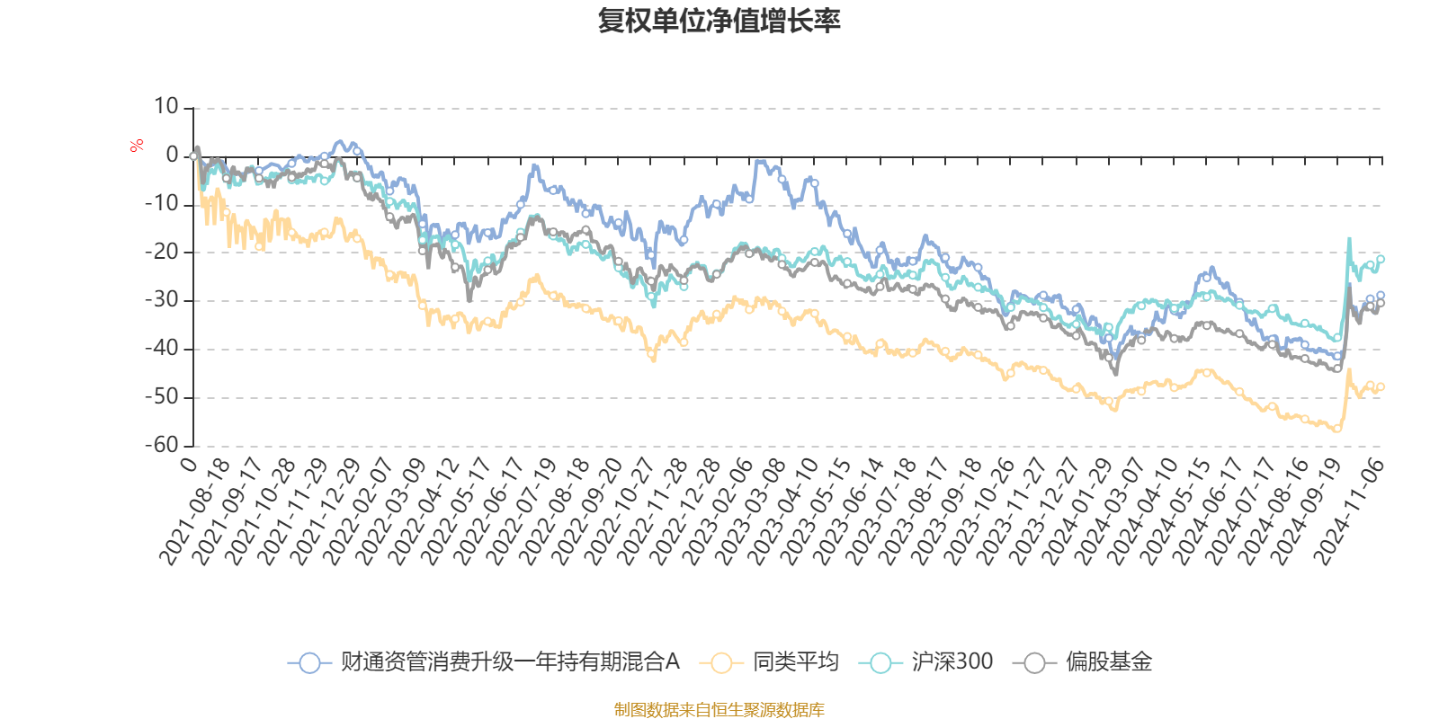 截至11月6日,财通资管消费升级一年持有期混合A近三个月复权单位净值增长率为14.64%,位于同类可比基金53/139;近半年复权单位净值增长率为-3.68%,位于同类可比基金43/138;近一年复权单位净值增长率为0.06%,位于同类可比基金28/135;近三年复权单位净值增长率为-28.60%,位于同类可比基金45/114。