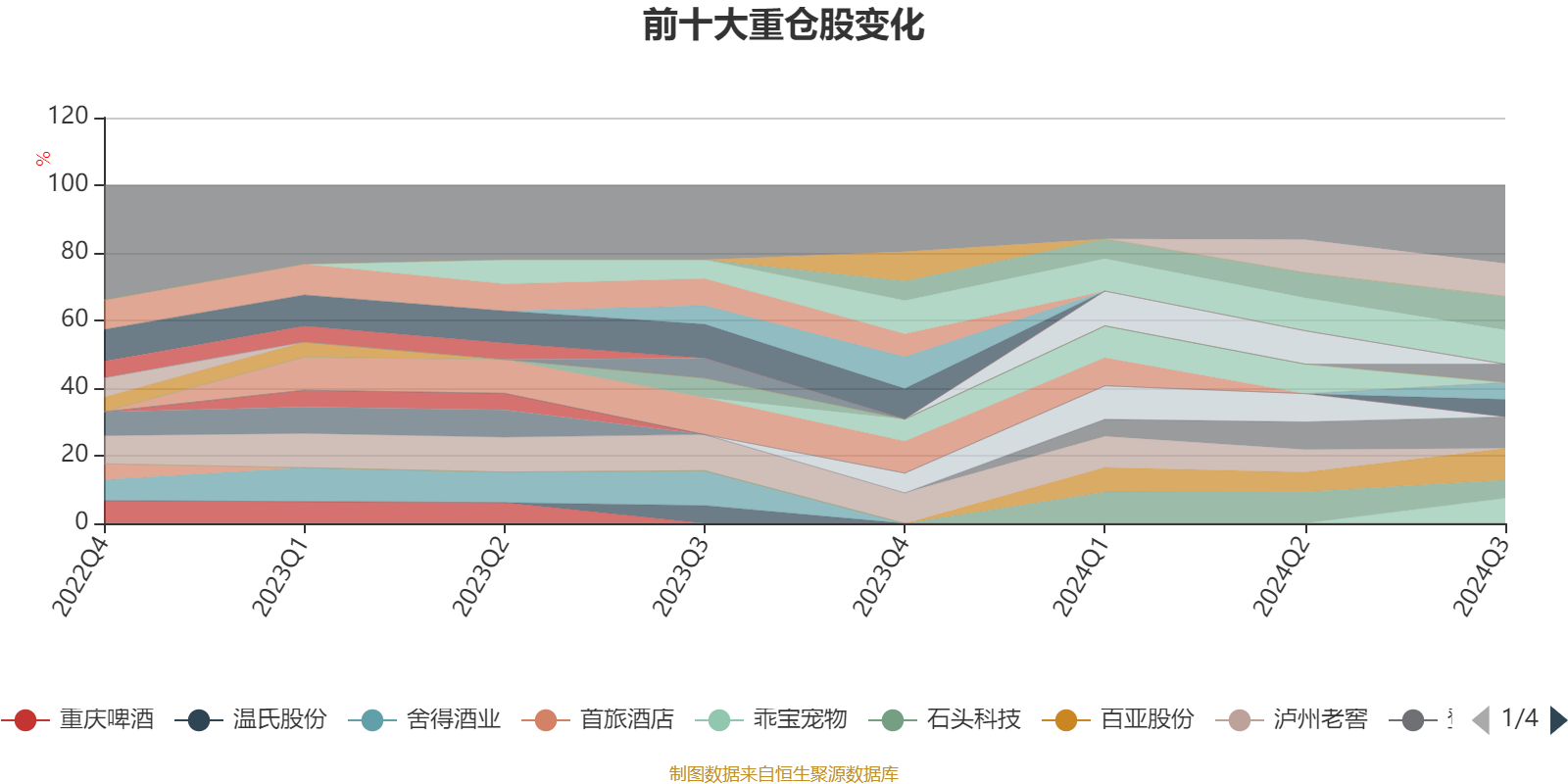 该基金持股集中度较高,近2年前十大重仓股集中度长期超过60%。截至2024年三季度末,基金十大重仓股分别是牧原股份、百润股份、九号公司、登康口腔、百亚股份、乖宝宠物、石头科技、稳健医疗、海尔智家、万辰集团。