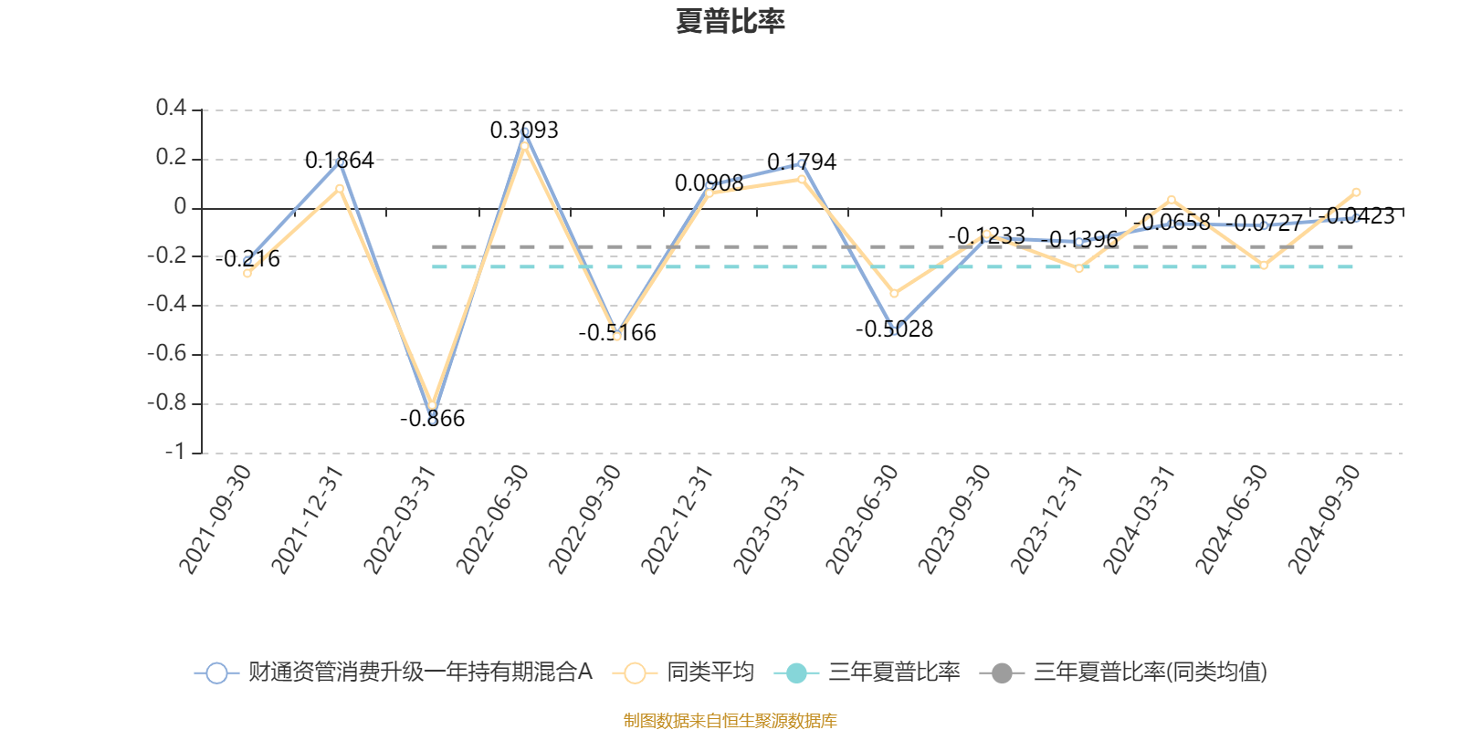 截至9月30日,基金近三年夏普比率为-0.2409,位于同类可比基金77/112。