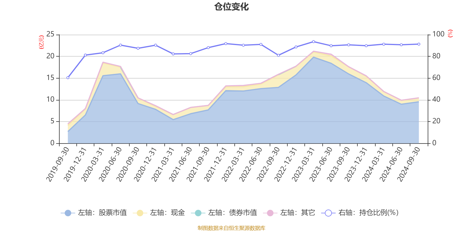 据定期报告数据统计,近三年平均股票仓位为89.98%,同类平均为85.69%。2023年一季度末基金达到93.56%的最高仓位,2019年三季度末最低,为60.41%。