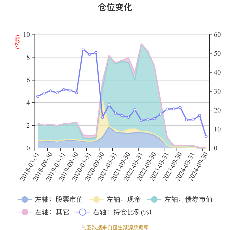 据定期报告数据统计,近三年平均股票仓位为16.6%,同类平均为18.65%。2019年末基金达到52.3%的最高仓位,2024年三季度末最低,为6%。