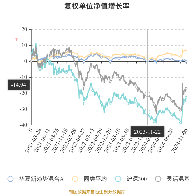 截至11月6日,华夏新趋势混合A近三个月复权单位净值增长率为-0.47%,位于同类可比基金153/155;近半年复权单位净值增长率为-1.63%,位于同类可比基金149/155;近一年复权单位净值增长率为-1.48%,位于同类可比基金144/155;近三年复权单位净值增长率为-3.21%,位于同类可比基金126/154。