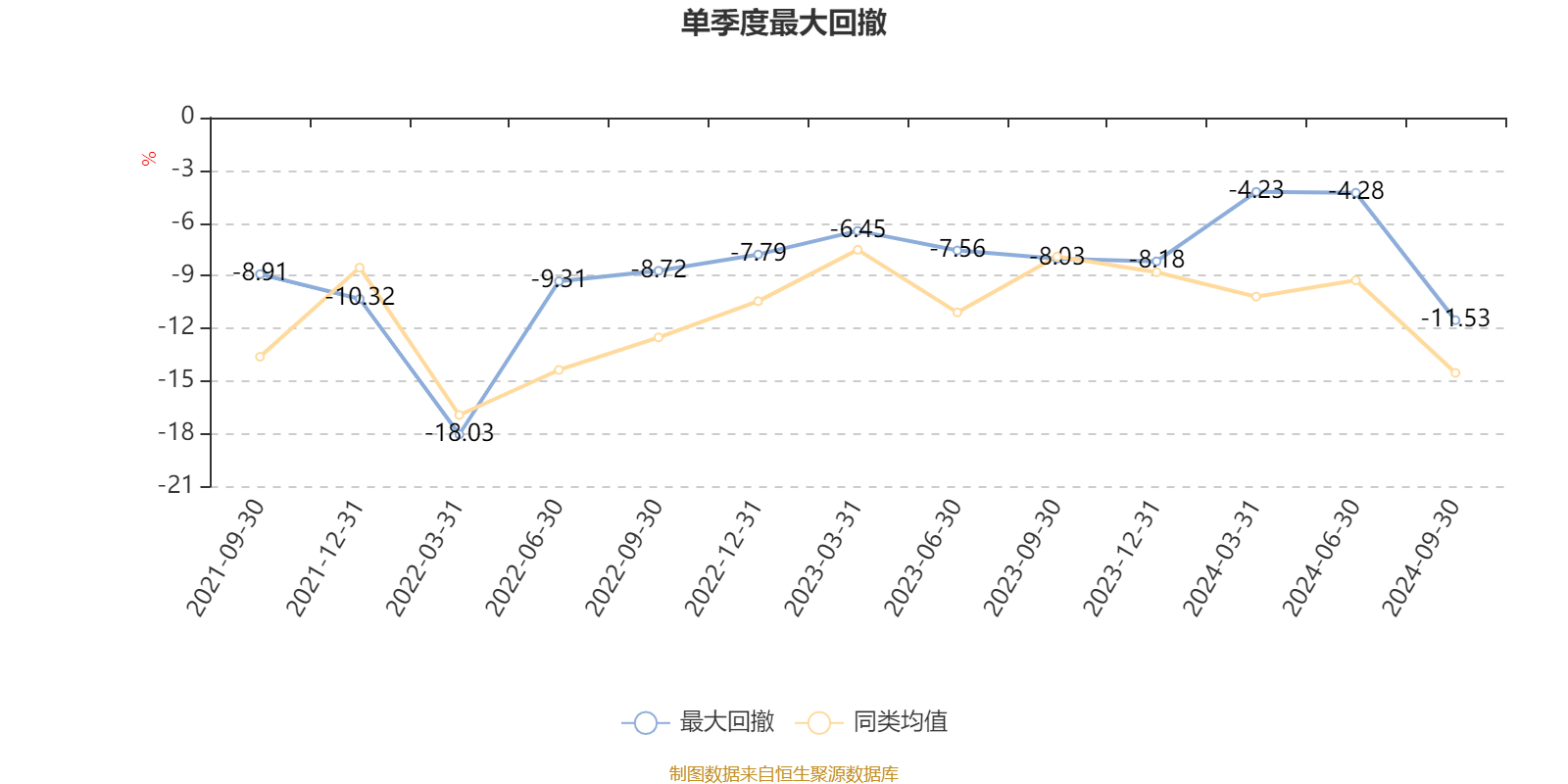 截至11月6日,基金近三年最大回撤为25.15%,同类可比基金排名47/60。其中,单季度最大回撤出现在2022年一季度,为18.03%。