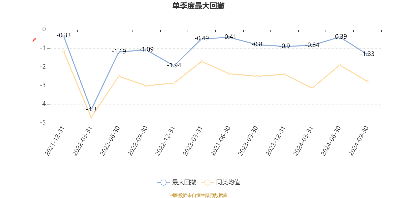 截至11月6日,基金近三年最大回撤为4.3%,同类可比基金排名411/461。其中,单季度最大回撤出现在2022年一季度,为4.3%。