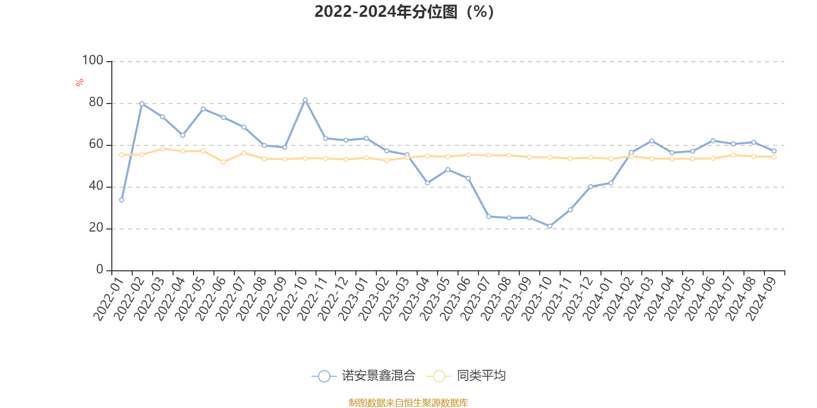 通过所选区间该基金净值增长率分位图,可以观察该基金与同类基金业绩比较情况。图为坐标原点到区间内某时点的净值增长率在同类基金中的分位数。