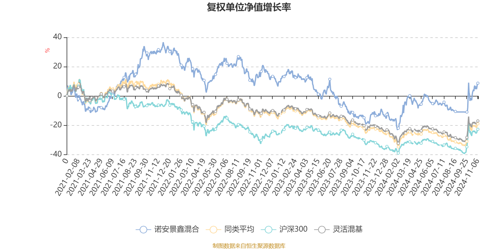 截至11月6日,诺安景鑫混合近三个月复权单位净值增长率为19.58%,位于同类可比基金331/920;近半年复权单位净值增长率为11.51%,位于同类可比基金197/920;近一年复权单位净值增长率为27.69%,位于同类可比基金18/920;近三年复权单位净值增长率为-15.32%,位于同类可比基金288/892。
