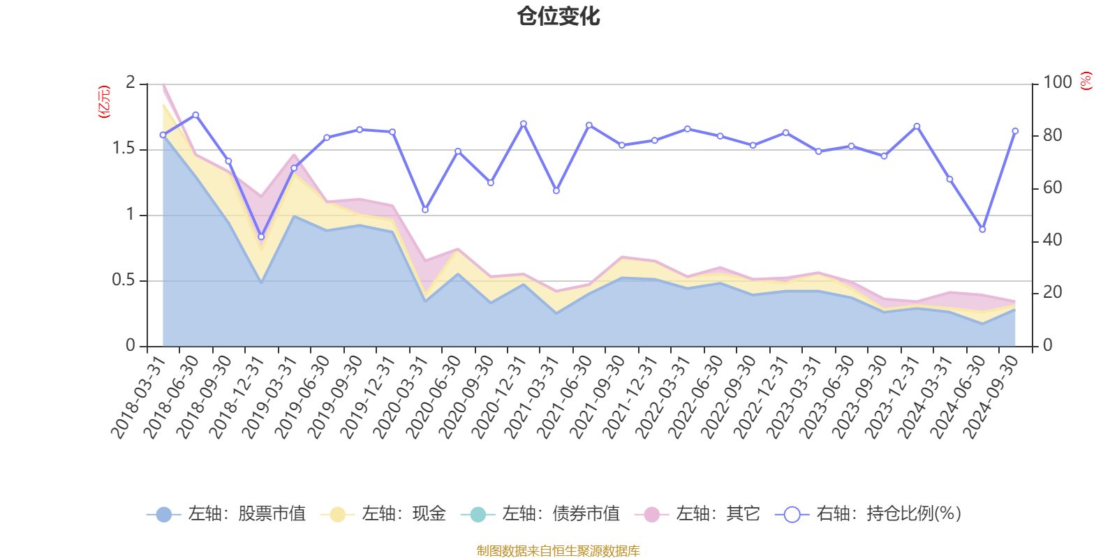 据定期报告数据统计,近三年平均股票仓位为74.66%,同类平均为79.77%。2018年上半年末基金达到88.12%的最高仓位,2018年末最低,为41.7%。