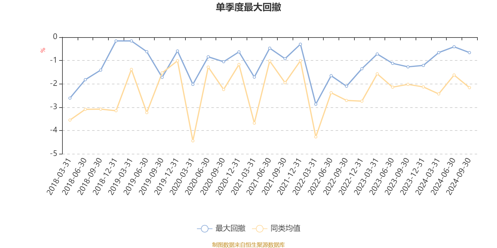 通过所选区间该基金净值增长率分位图,可以观察该基金与同类基金业绩比较情况。图为坐标原点到区间内某时点的净值增长率在同类基金中的分位数。