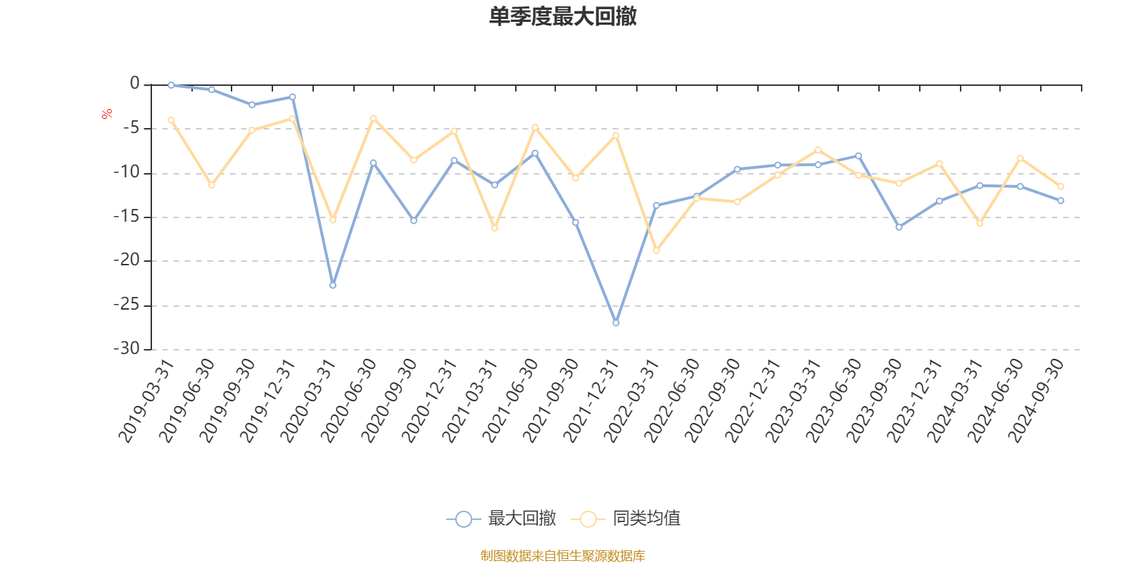 通过所选区间该基金净值增长率分位图,可以观察该基金与同类基金业绩比较情况。图为坐标原点到区间内某时点的净值增长率在同类基金中的分位数。