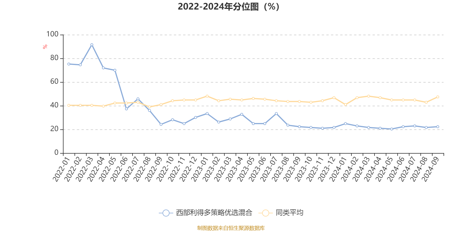 通过所选区间该基金净值增长率分位图,可以观察该基金与同类基金业绩比较情况。图为坐标原点到区间内某时点的净值增长率在同类基金中的分位数。