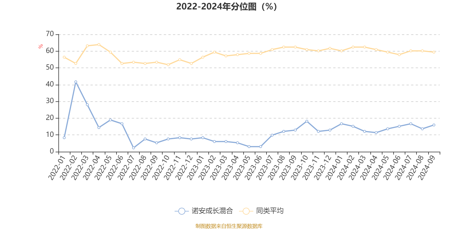 通过所选区间该基金净值增长率分位图,可以观察该基金与同类基金业绩比较情况。图为坐标原点到区间内某时点的净值增长率在同类基金中的分位数。