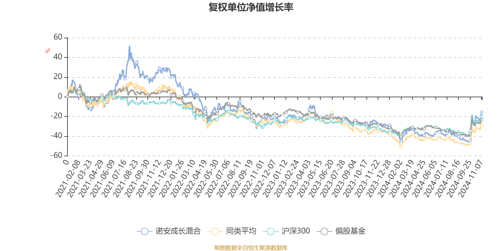 截至11月7日,诺安成长混合近三个月复权单位净值增长率为39.92%,位于同类可比基金42/202;近半年复权单位净值增长率为33.15%,位于同类可比基金27/202;近一年复权单位净值增长率为10.88%,位于同类可比基金71/182;近三年复权单位净值增长率为-32.66%,位于同类可比基金99/124。