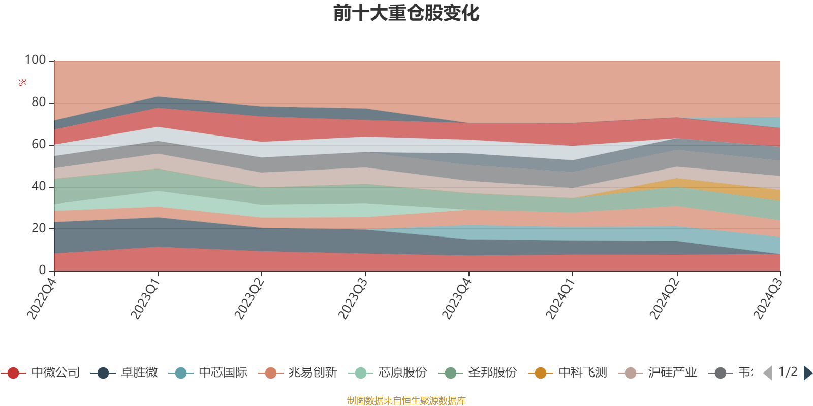 该基金持股集中度较高,且持股标的较为稳定,近2年前十大重仓股集中度长期超过60%。截至2024年三季度末,基金十大重仓股分别是圣邦股份、北方华创、中芯国际、中微公司、兆易创新、韦尔股份、沪硅产业、华大九天、海光信息、中科飞测。