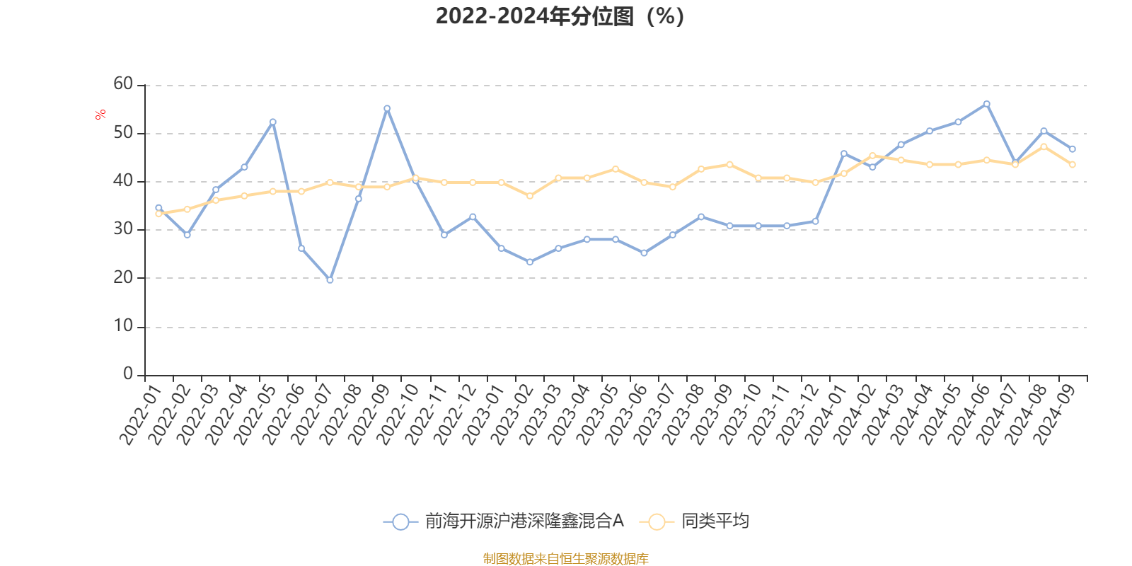 通过所选区间该基金净值增长率分位图,可以观察该基金与同类基金业绩比较情况。图为坐标原点到区间内某时点的净值增长率在同类基金中的分位数。