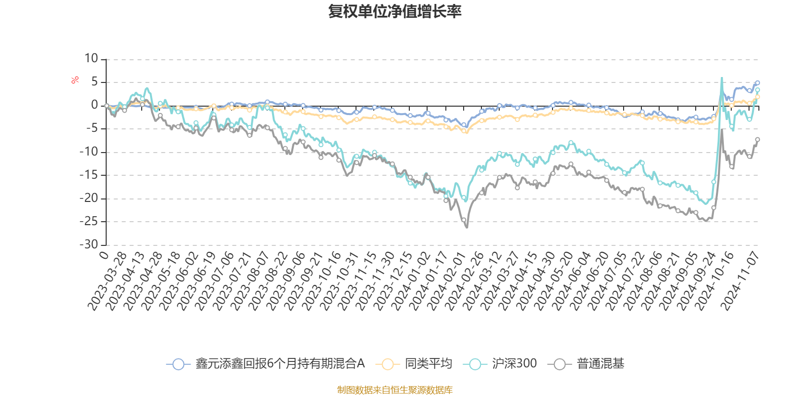 截至11月7日,鑫元添鑫回报6个月持有期混合A近三个月复权单位净值增长率为6.60%,位于同类可比基金151/670;近半年复权单位净值增长率为4.14%,位于同类可比基金170/670;近一年复权单位净值增长率为5.39%,位于同类可比基金255/658。