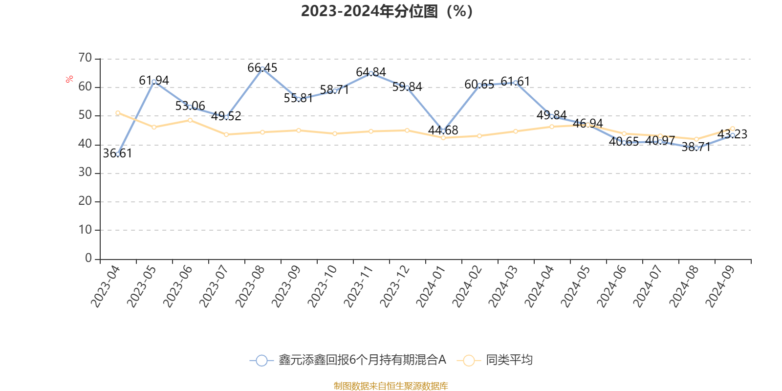 通过所选区间该基金净值增长率分位图,可以观察该基金与同类基金业绩比较情况。图为坐标原点到区间内某时点的净值增长率在同类基金中的分位数。