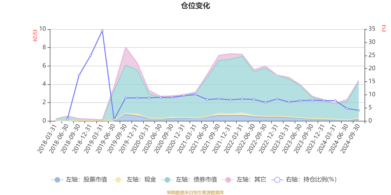 据定期报告数据统计,近三年平均股票仓位为7.31%,同类平均为18.65%。2019年一季度末基金达到34.48%的最高仓位,2019年上半年末最低,为0.62%。