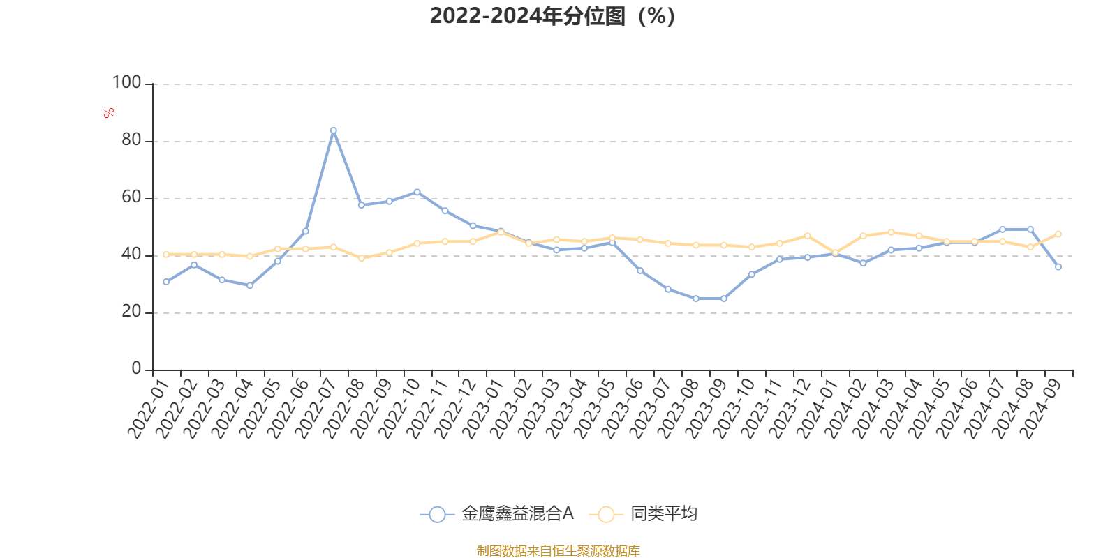 通过所选区间该基金净值增长率分位图,可以观察该基金与同类基金业绩比较情况。图为坐标原点到区间内某时点的净值增长率在同类基金中的分位数。