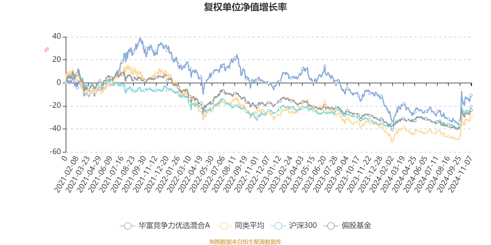 截至11月7日,华富竞争力优选混合A近三个月复权单位净值增长率为28.49%,位于同类可比基金136/202;近半年复权单位净值增长率为13.60%,位于同类可比基金152/202;近一年复权单位净值增长率为-4.32%,位于同类可比基金168/182;近三年复权单位净值增长率为-27.70%,位于同类可比基金79/124。