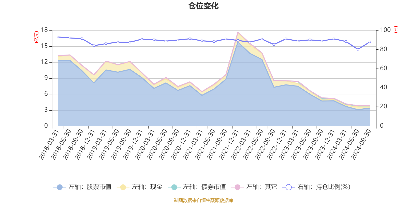 据定期报告数据统计,近三年平均股票仓位为88.39%,同类平均为86.3%。2018年一季度末基金达到93.18%的最高仓位,2024年上半年末最低,为80.25%。