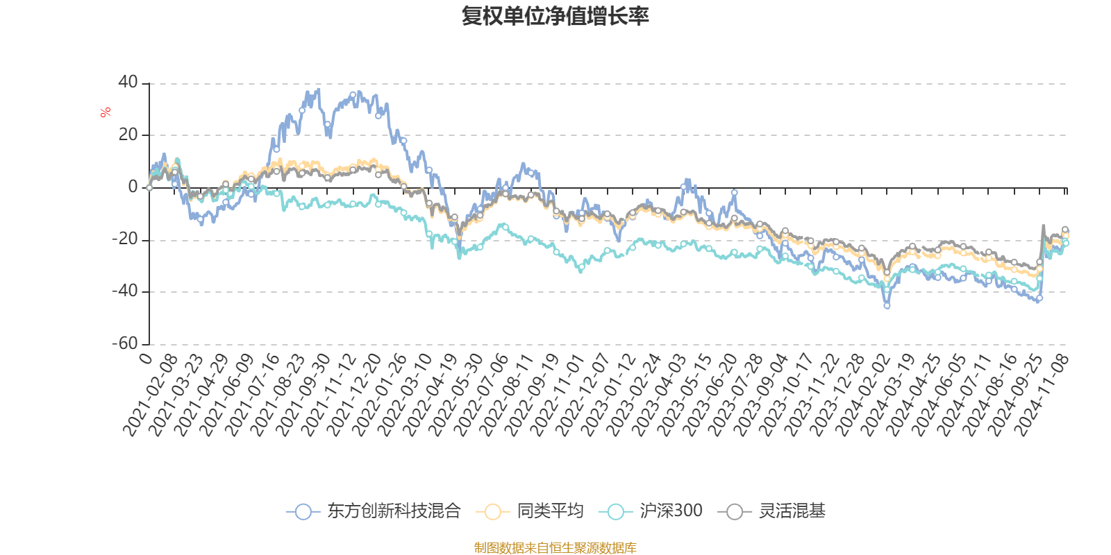 截至11月8日,东方创新科技混合近三个月复权单位净值增长率为32.86%,位于同类可比基金75/920;近半年复权单位净值增长率为25.96%,位于同类可比基金39/920;近一年复权单位净值增长率为8.42%,位于同类可比基金322/920;近三年复权单位净值增长率为-37.86%,位于同类可比基金743/892。