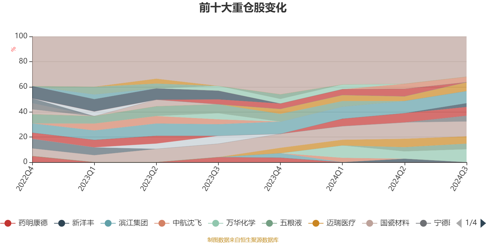 该基金持股集中度较高。截至2024年三季度末,基金十大重仓股分别是国瓷材料、万华化学、贵州茅台、蓝晓科技、宁波银行、迈瑞医疗、宁德时代、五粮液、海大集团、保利发展。