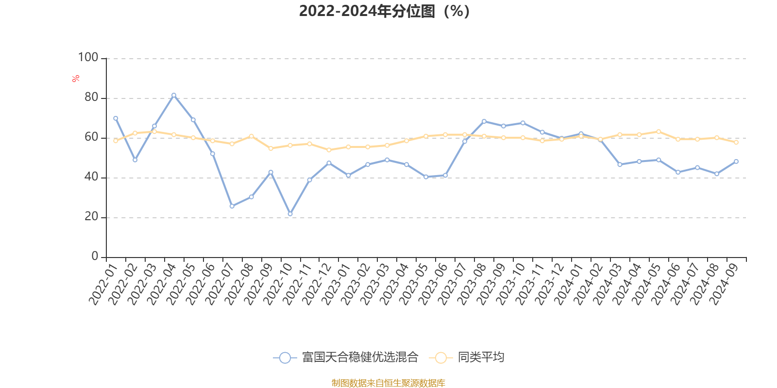 通过所选区间该基金净值增长率分位图,可以观察该基金与同类基金业绩比较情况。图为坐标原点到区间内某时点的净值增长率在同类基金中的分位数。