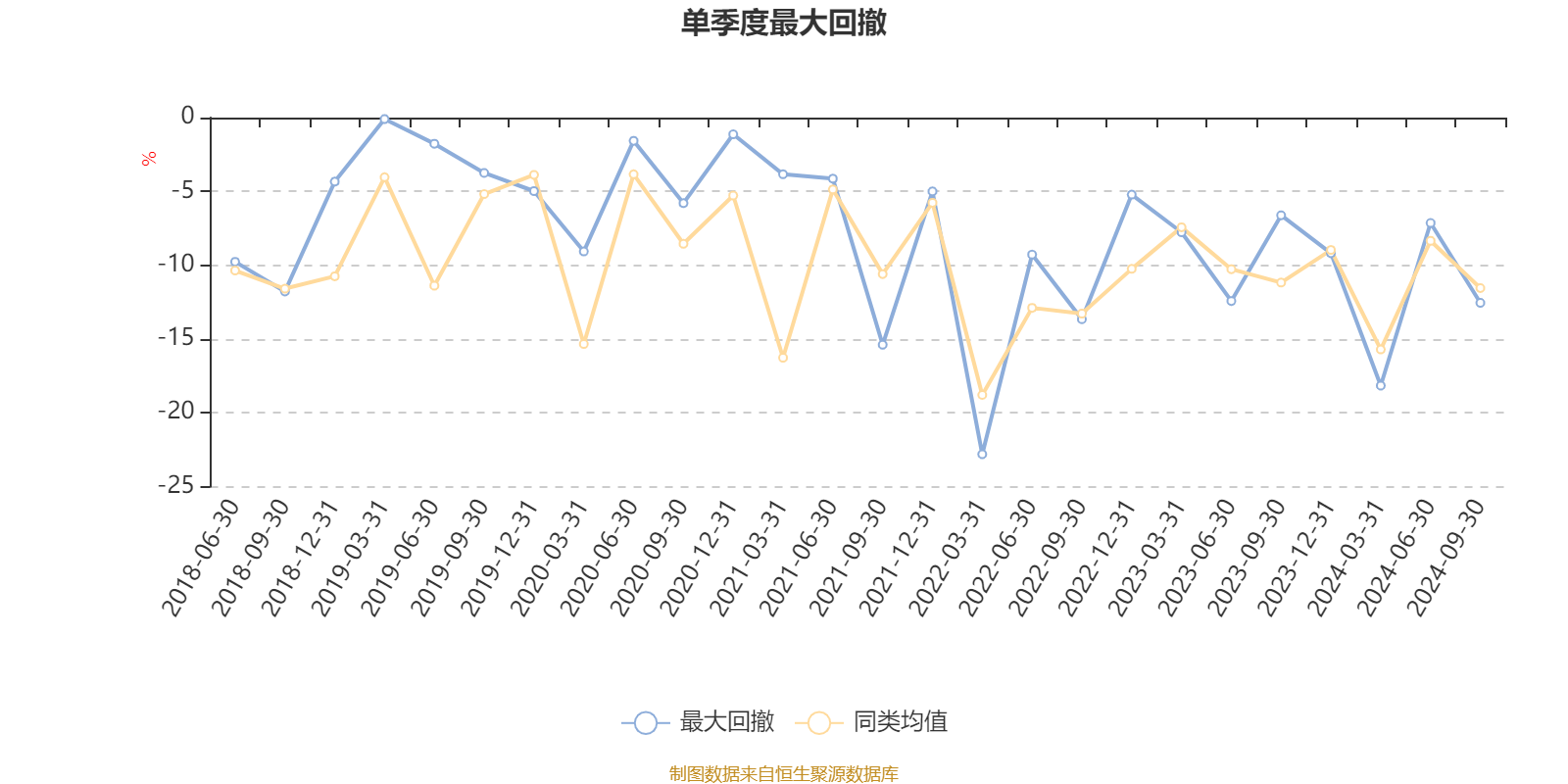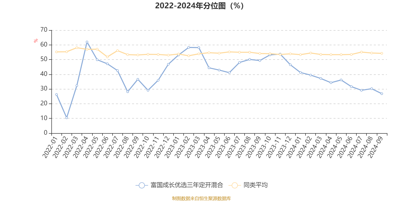 通过所选区间该基金净值增长率分位图,可以观察该基金与同类基金业绩比较情况。图为坐标原点到区间内某时点的净值增长率在同类基金中的分位数。
