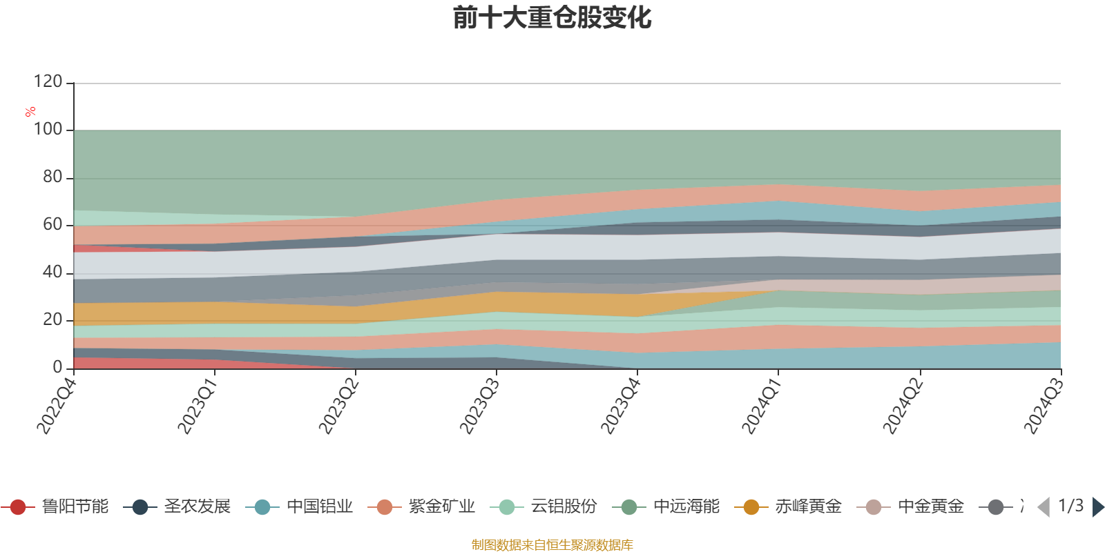 该基金持股集中度较高,近2年前十大重仓股集中度长期超过60%。截至2024年三季度末,基金十大重仓股分别是中国铝业、赛轮轮胎、昊华科技、云铝股份、远兴能源、紫金矿业、中远海能、中金黄金、洛阳钼业、西部材料。