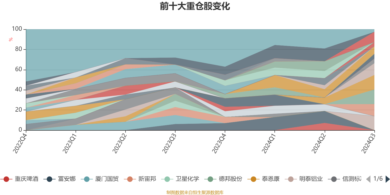 截至2024年三季度末,基金十大重仓股分别是匠心家居、赛轮轮胎、明泰铝业、新天然气、长江电力、纽威股份、新奥股份、格力电器、中国移动、中国重汽。