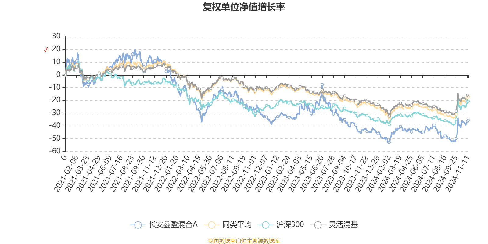 截至11月11日,长安鑫盈混合A近三个月复权单位净值增长率为26.01%,位于同类可比基金255/920;近半年复权单位净值增长率为13.01%,位于同类可比基金241/920;近一年复权单位净值增长率为13.56%,位于同类可比基金210/920;近三年复权单位净值增长率为-41.39%,位于同类可比基金790/892。