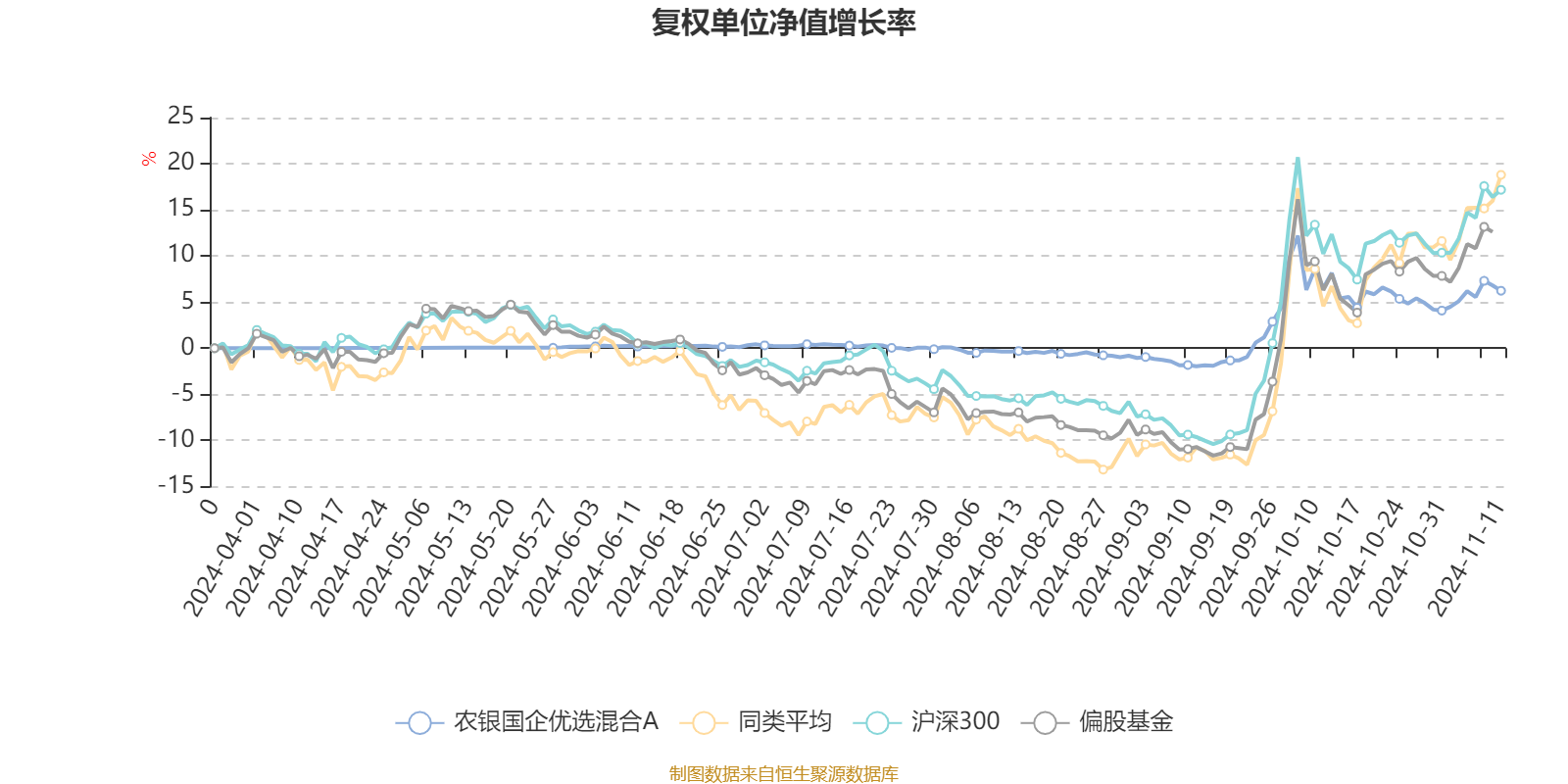 截至11月11日,农银国企优选混合A近三个月复权单位净值增长率为6.62%,位于同类可比基金180/182;近半年复权单位净值增长率为6.17%,位于同类可比基金161/181。