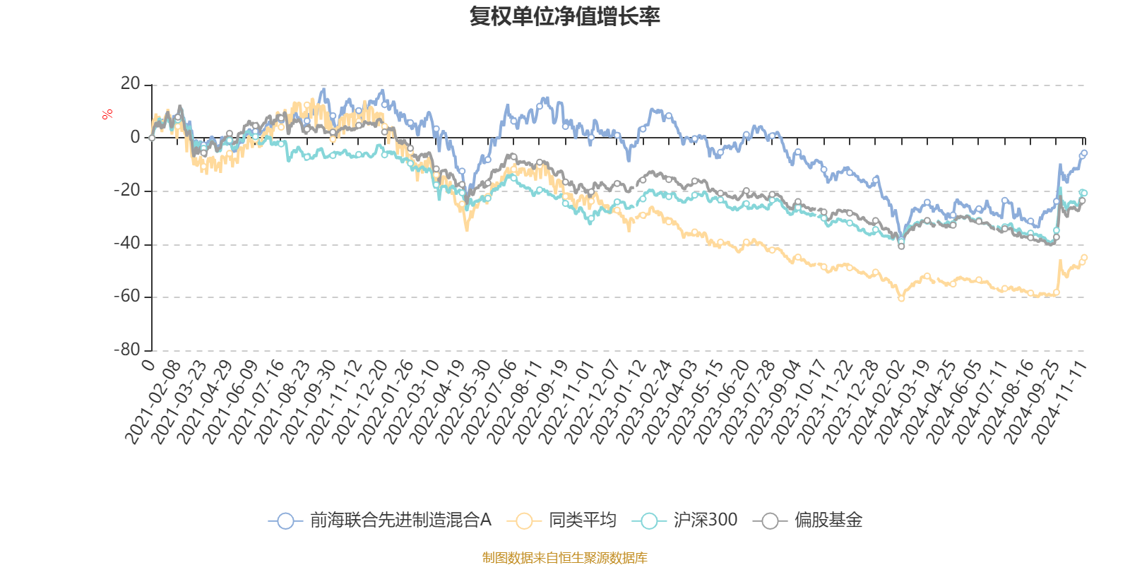 截至11月11日,前海联合先进制造混合A近三个月复权单位净值增长率为37.09%,位于同类可比基金42/182;近半年复权单位净值增长率为24.93%,位于同类可比基金19/181;近一年复权单位净值增长率为8.77%,位于同类可比基金70/169;近三年复权单位净值增长率为-13.93%,位于同类可比基金7/101。