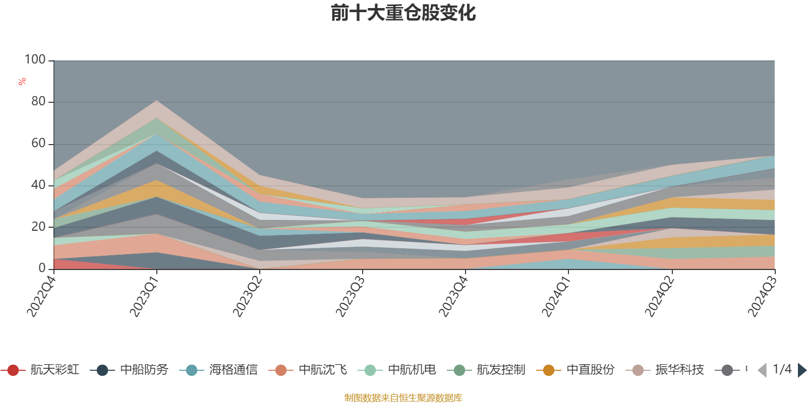 截至2024年三季度末,基金十大重仓股分别是中航光电、航发动力、中航沈飞、中航西飞、中直股份、航发控制、钢研高纳、中国动力、中航高科、航天电器。