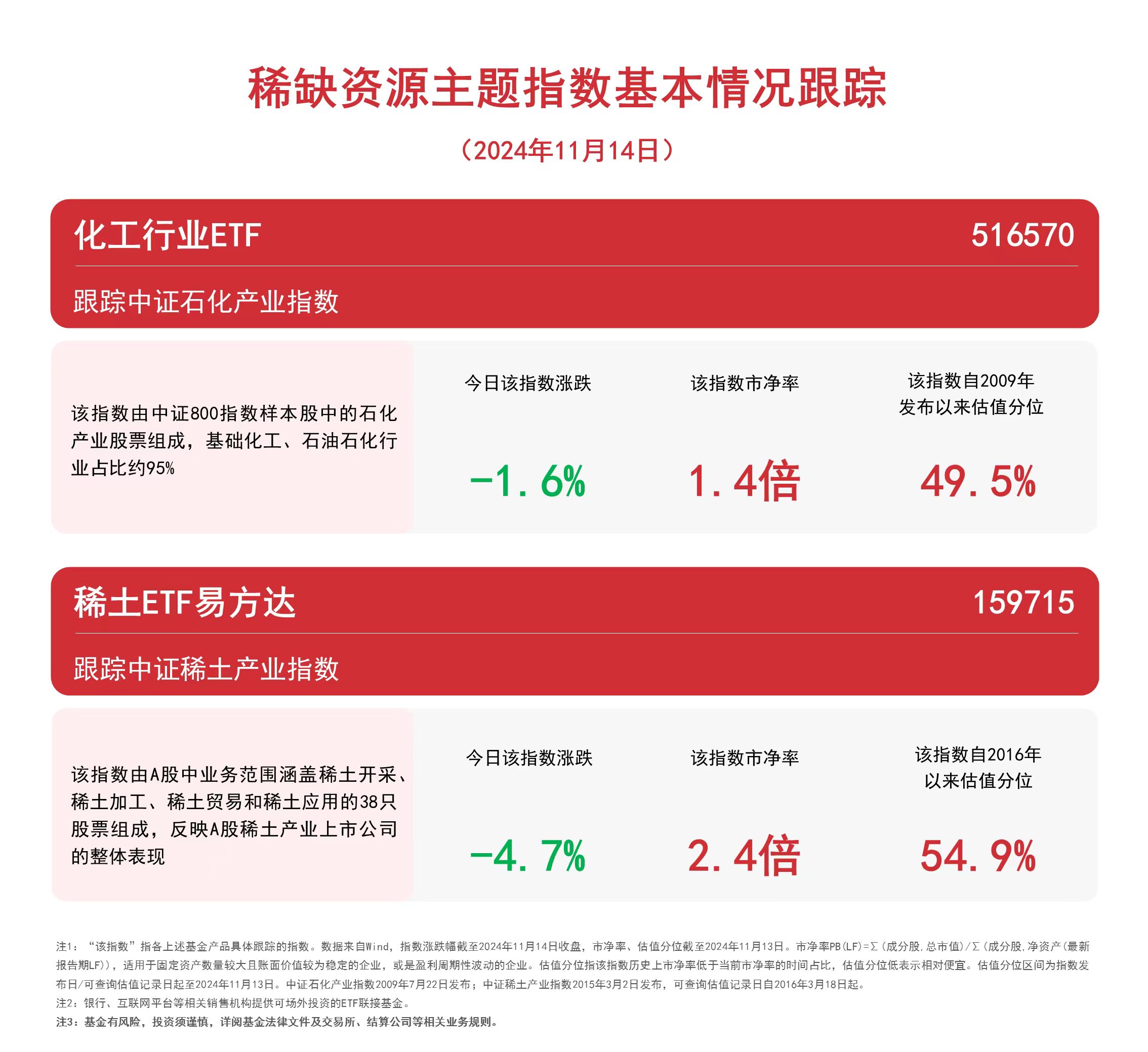 稀缺资源主题指数调整,关注化工行业ETF(516570)、稀土ETF易方达(159715)等产品动态