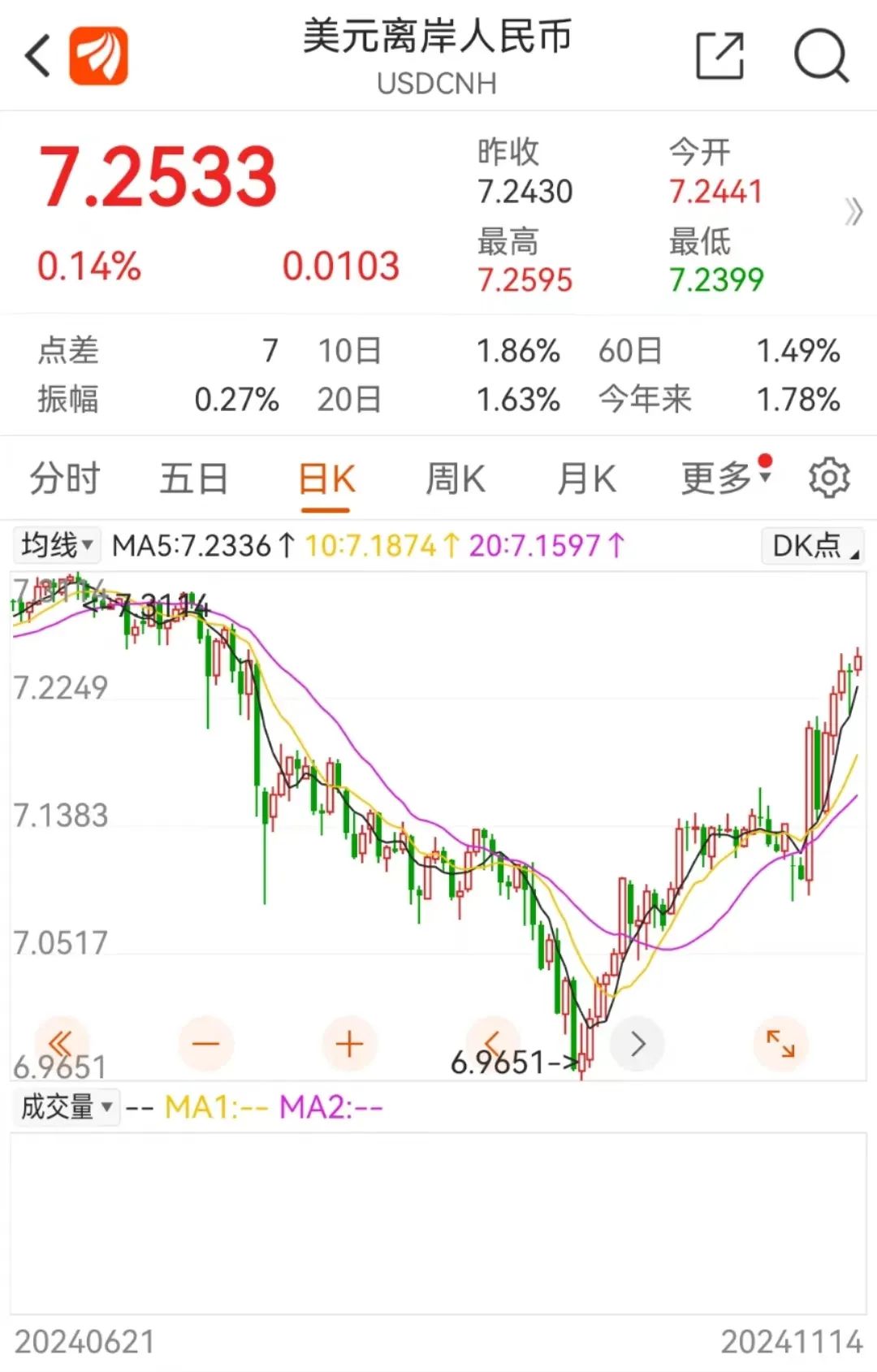近期,日元兑美元汇率继续走低,一度跌破156关口,为今年7月以来的最低点。人民币汇率也在持续走弱。隔壁港股恒生指数跌近2%。