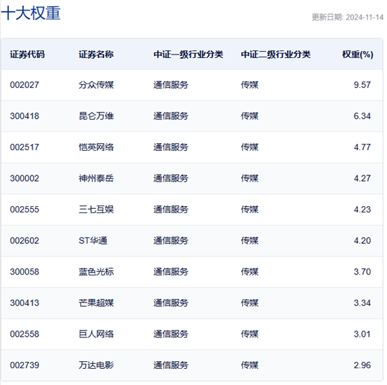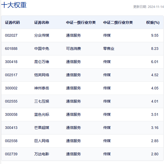 中证传媒指数从营销与广告、文化娱乐、数字媒体等行业中,选取总市值较大的50只上市公司证券作为指数样本,以反映传媒领域代表性上市公司证券的整体表现。