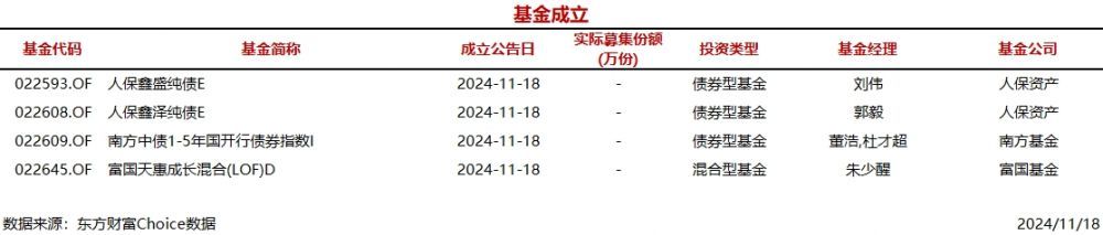 每经AI快讯,据东方财富Choice数据统计,今日共有4只基金公告成立(A/C类分开计算),包括3只债券型基金、1只混合型基金。