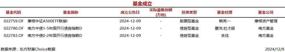 今日3只基金公告成立