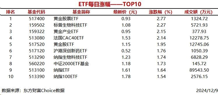 (原标题:4只ETF涨幅超过2%,黄金股票ETF上涨2.77%)