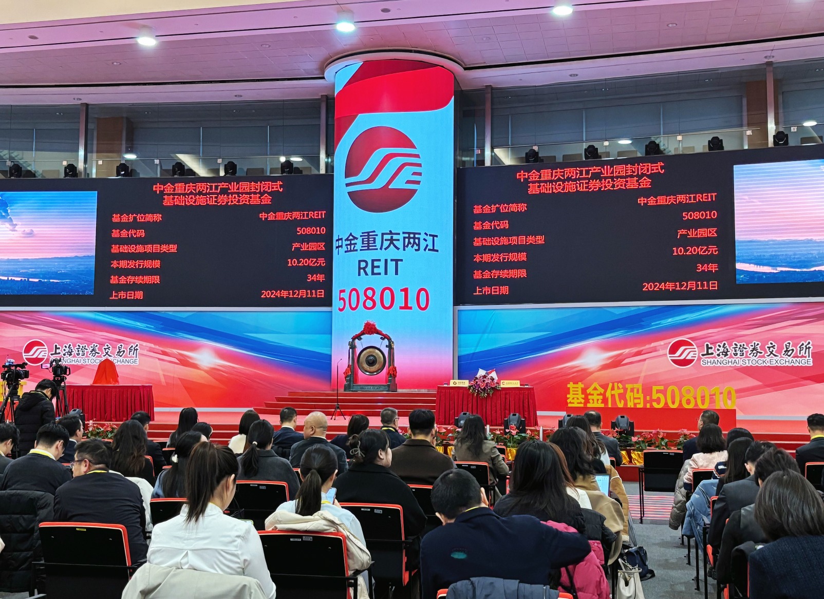 12月11日,中金重庆两江产业园封闭式基础设施证券投资基金(以下简称“中金重庆两江REIT”)正式上市交易,并在上海证券交易所(以下简称“上交所”)举办上市仪式。