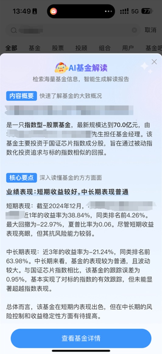 AI基金解读支持检索基金信息,为您智能生成解读报告,带您秒懂基金。